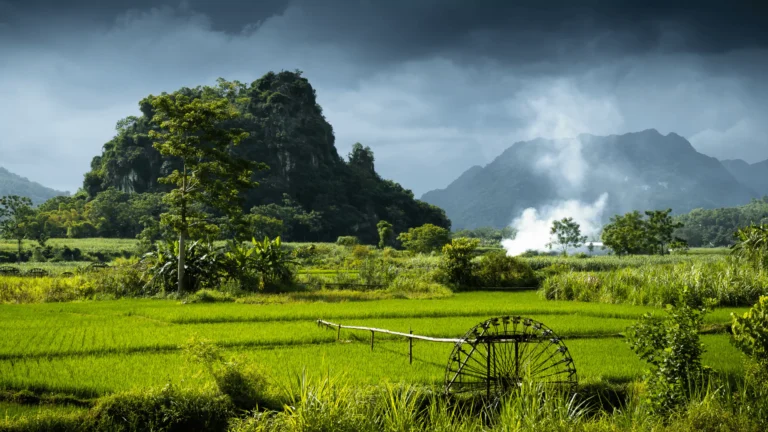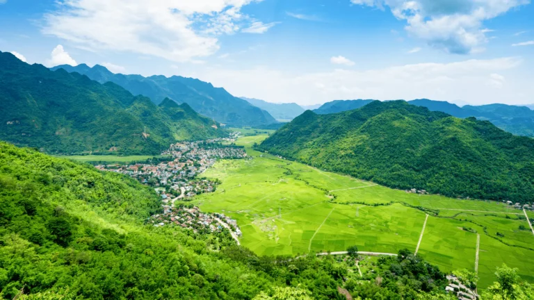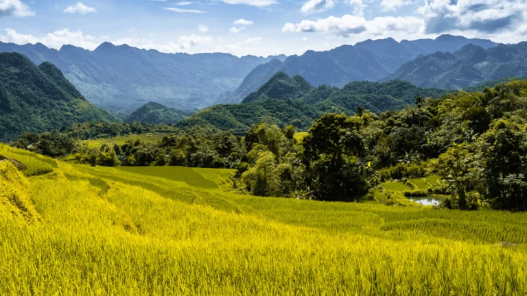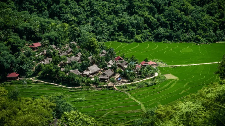 Escape the bustle of Hanoi and travel through scenic landscapes to the tranquil valley of Mai Chau. Upon arrival, stroll or cycle to Lac Hamlet for a traditional home-cooked lunch, then glide through emerald rice paddies on a leisurely cycling adventure. Encounter warm smiles and local traditions of the White Thai people.