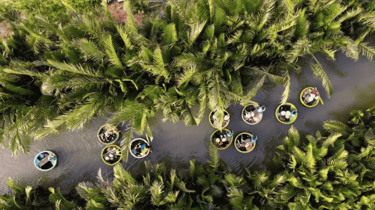 Ride a traditional basket boat in Cam Thanh’s Coconut Forest, explore the Marble Mountains, and return to Hoi An for an evening of dining and lantern-lit wandering through the UNESCO old town.