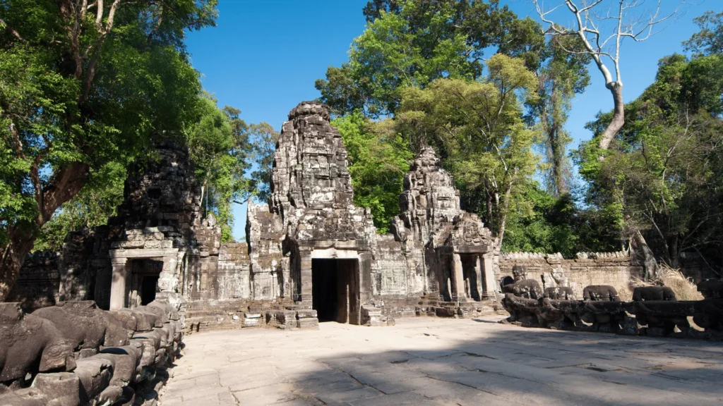 Preah Khan is another major temple within the Angkor complex. This sprawling temple is a blend of Buddhist and Hindu influences, with beautifully preserved carvings. The temple is surrounded by jungle and offers a more peaceful and less crowded experience compared to other Angkor temples.